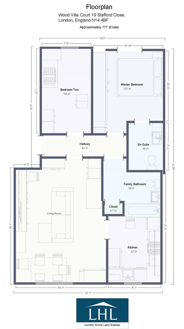 LHL Estates, as "Vendors chosen Sole Agents," are delighted to present this modern two-bedroom first-floor flat, built in 2003, within a gated community situated in a cul-de-sac of Stafford Close and a stone's throw from Oakwood tube station (Picadilly Line Zone 5). This contemporary apartment offers one double bedroom with en-suite and one single bedroom, a modern family bathroom, a modern kitchen, and a laminated floor. More details are as follows: Entrance through a main door: Hallway: 13 x 3.5 ft. Laminated Floor, Gas radiator, phone entry system, Electricity Consumer unit Reception Room: 19 x 14 ft (Approx).Double-glazed window to the rear, laminated floor, gas radiator, and a cable point. Kitchen 10.5 x 8 ft. Comprising a range of wall and base units, four hob gas burner, electric oven, extractor hood, stainless steel sink with mixer tap, plumbing for washing machine and space for fridge and three power points. Bedroom One 13 x 11 ft – (En-suite) 7.6 x 5.5 ft Laminated floor. Romeo and Juliet's balcony has French double-glazed doors and power points. The en-suite comprises a cubicle shower with a power shower, a ceramic sink with hot and cold taps, and tiled floors. Bedroom Two 13 x 7 ft. Double-glazed window to the front aspect, laminated floors, and PowerPoint. Family Bathroom 8.11 x 8.9 > 7.5 ft. 7.5 ft. Comprising a three-piece suite, partly tiled walls, a mixer tap in the sink, a vanity cupboard underneath the sink, and a mixer tap in the bathtub with a shower attachment. Low flush WC, utility cupboard.